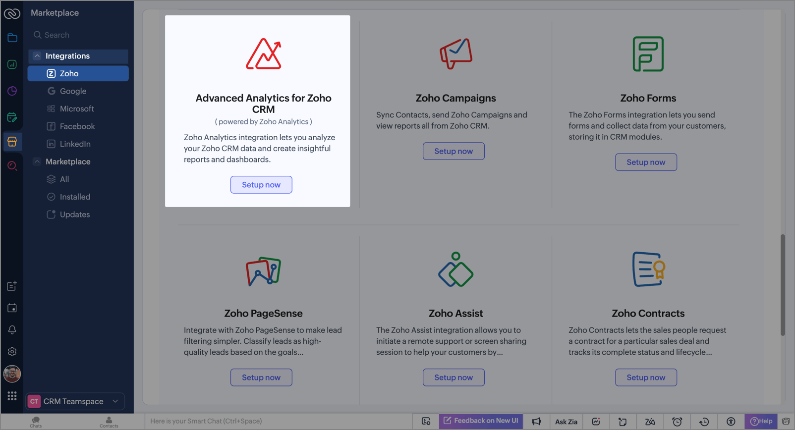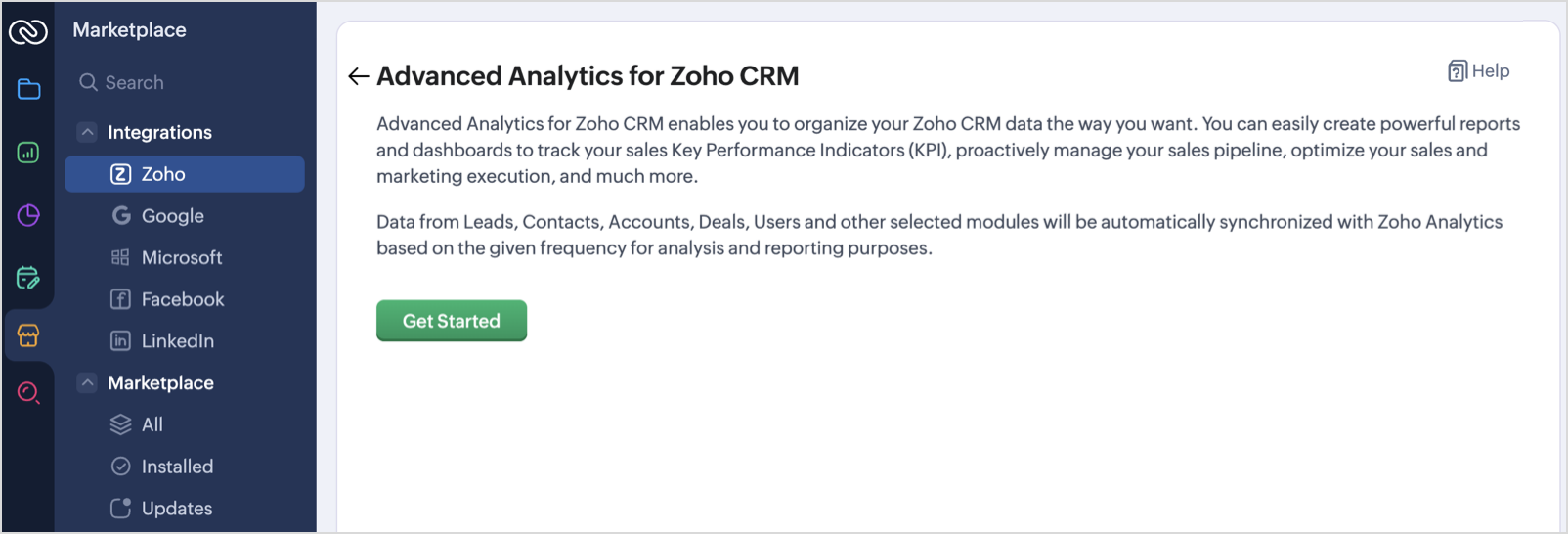 - Select Advanced Analytics for Zoho CRM from the list.