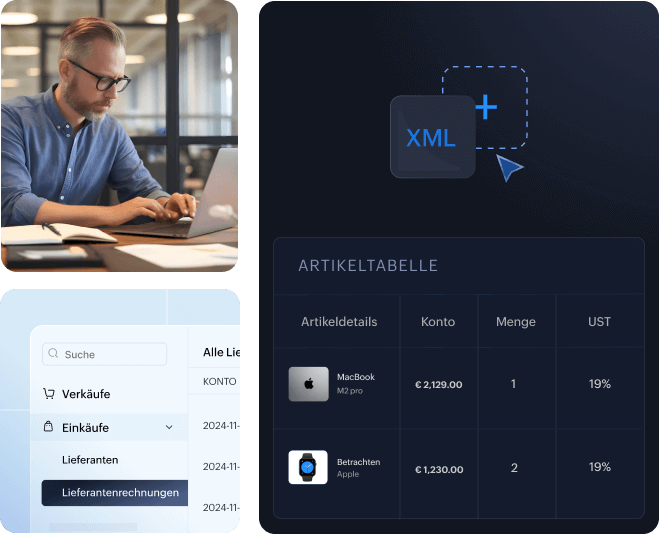 Import von Rechnungen und Lieferantengutschriften direkt im Format XRechnung oder ZUGFeRD.