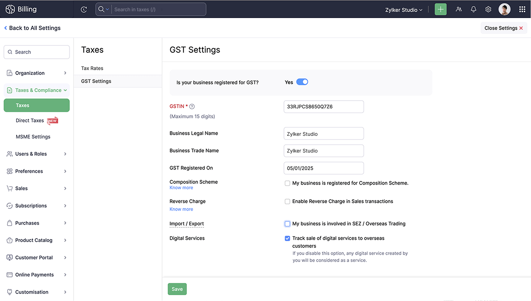 Zoho Billing regularly updates its features to ensure compliance with the latest GST regulations, so you don't have to worry about manually tracking regulatory changes.