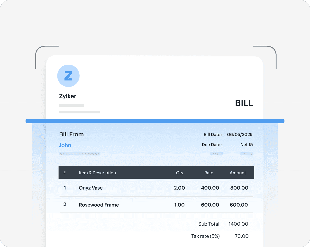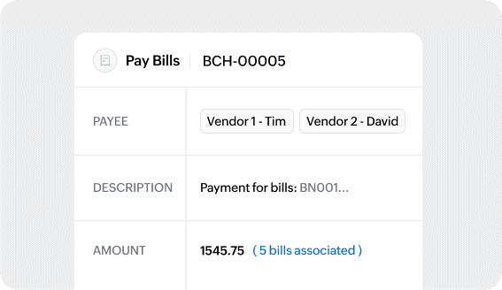 Managing your payables doesn’t have to be complicated. With Zoho Books, you can streamline your entire payable process from onboarding vendors to making payments with just a few clicks.
