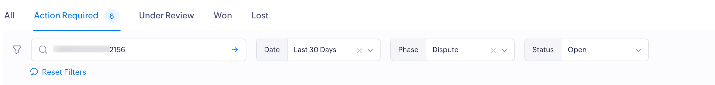 Use the search bar to look for a particular transaction. You can search by the Payment or Dispute ID to find the exact transaction you’re looking for.
