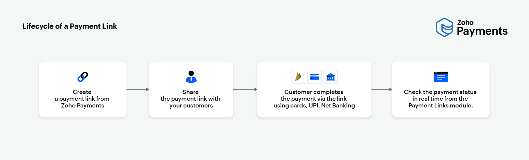 Here’s an end-to-end flow of how a payment link works in Zoho Payments.