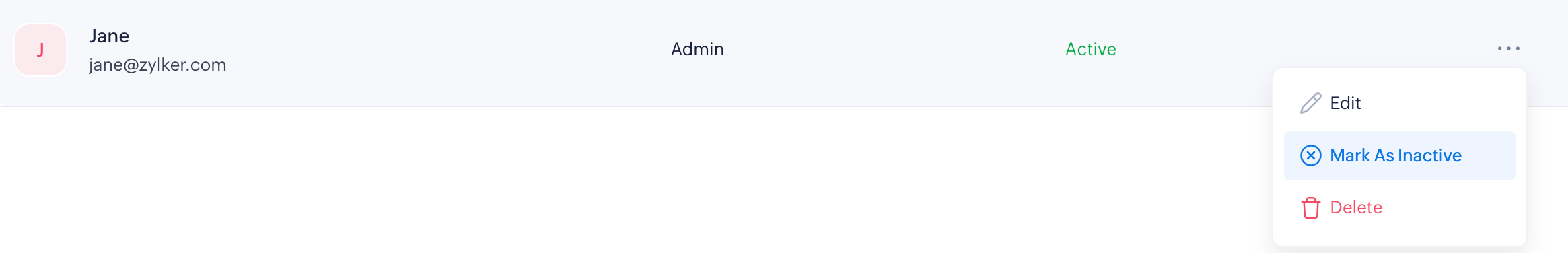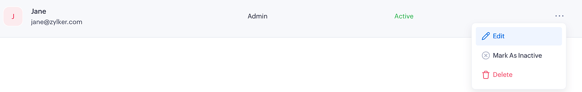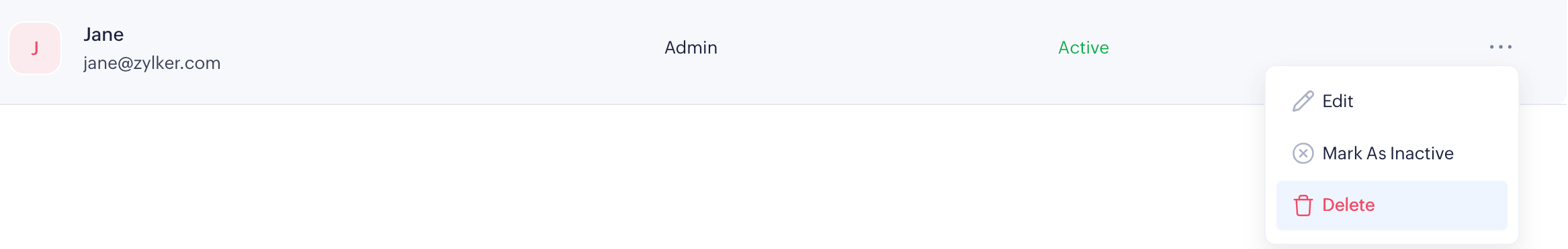When you do not want an active or invited user to access the account, you can delete them from Zoho Payments.