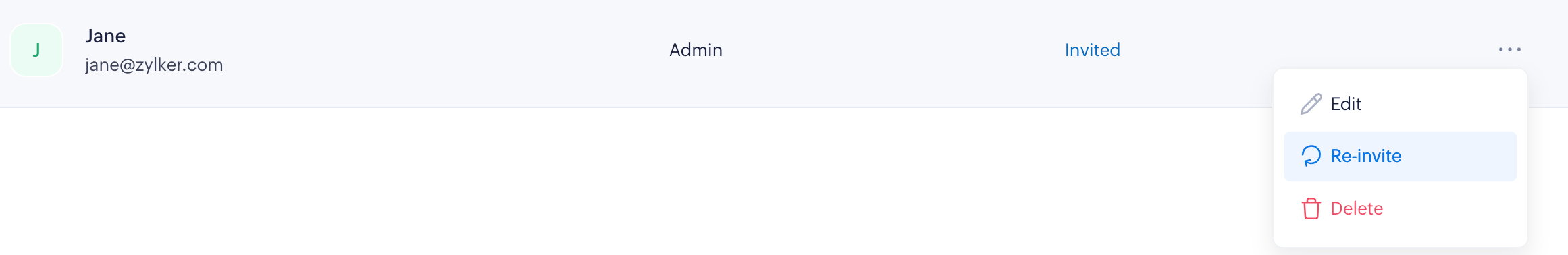You can re-invite users when their invitation has expired or when you want to update their role and invite them again.