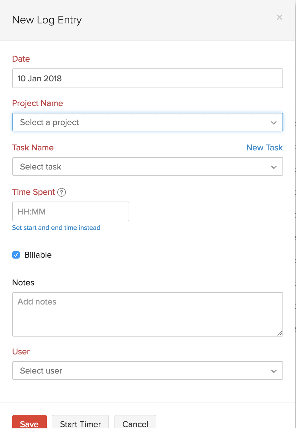 • Click Start Timer button to start logging time.