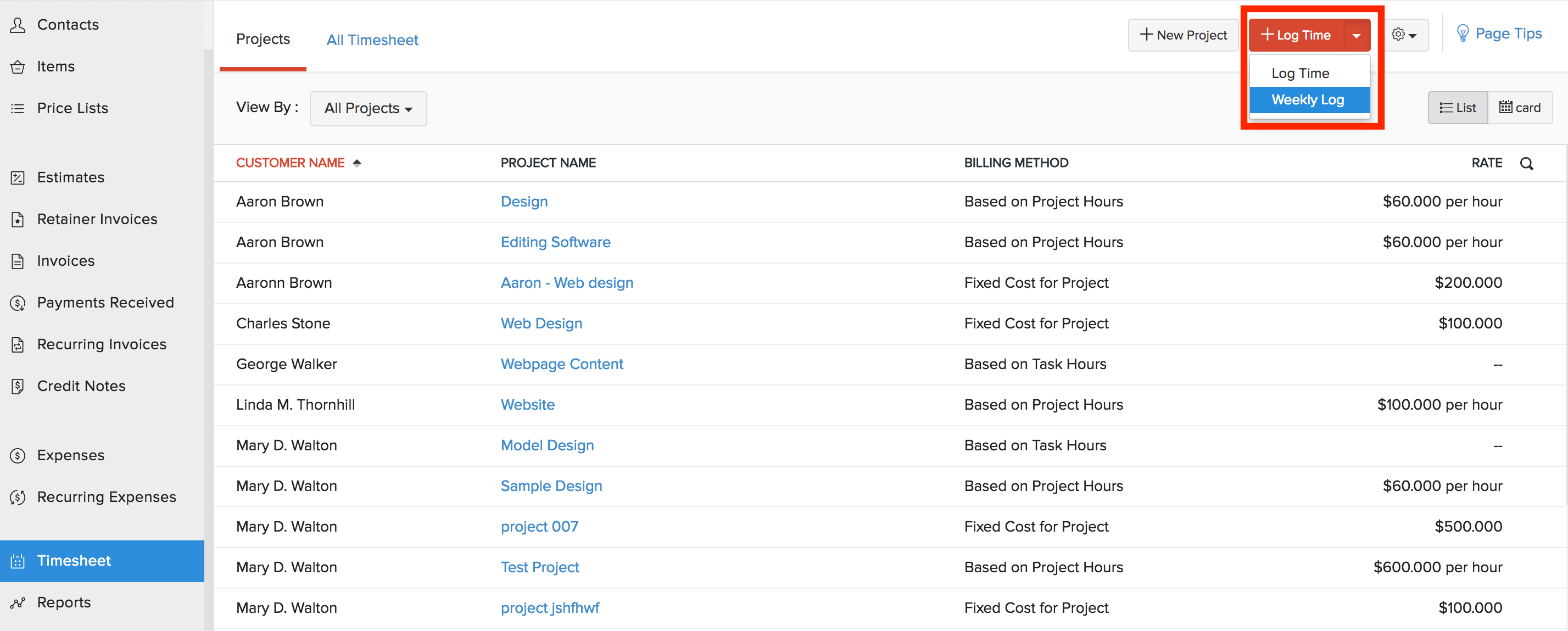 Weekly Log Time for Multiple Projects
