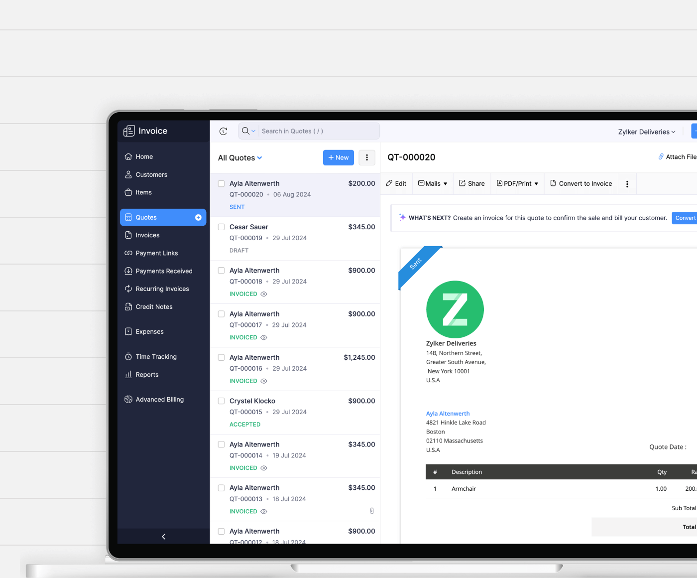Professional invoicing