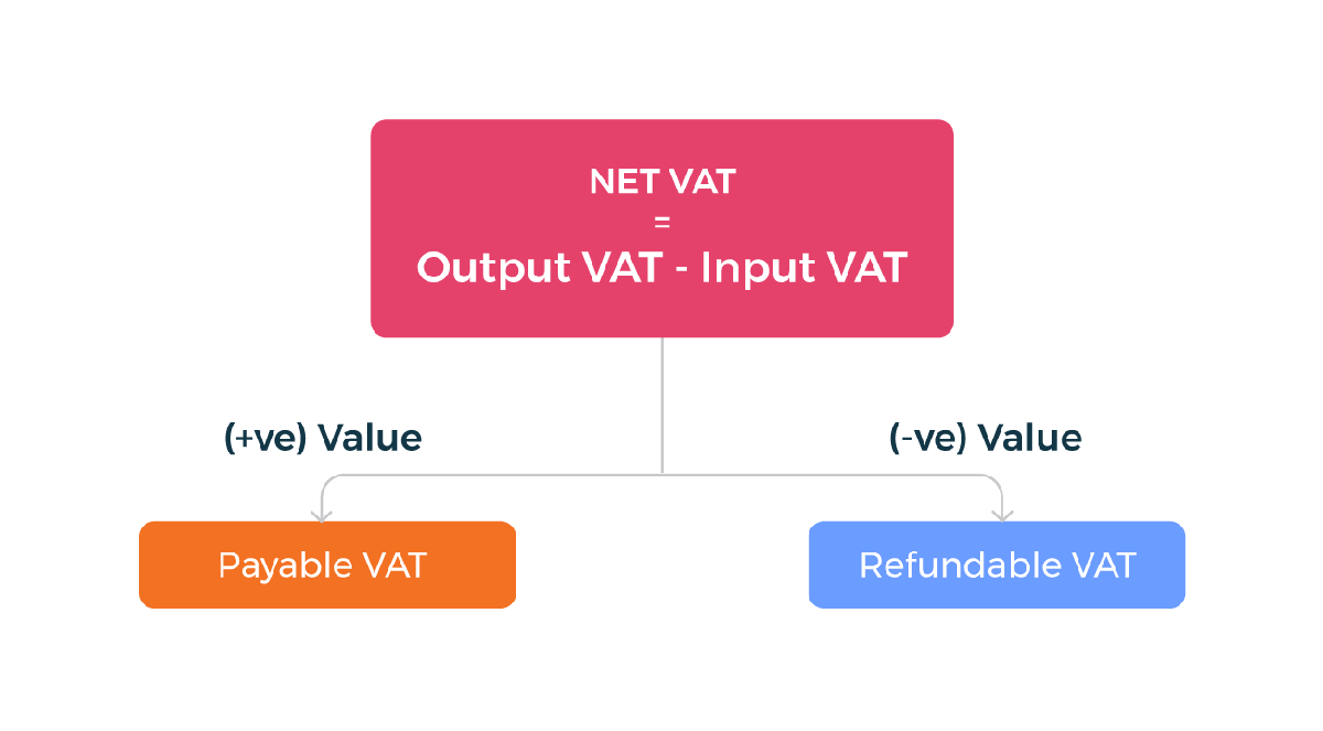 عندما يتم حساب صافي ضريبة القيمة المضافة للشركة ، إذا كانت القيمة إيجابية ، فإن صاحب العمل يكون مدينًا لضريبة القيمة المضافة على حسابه. وإذا كانت القيمة سلبية ، فيمكن لمالك النشاط التجاري المطالبة بائتمان المدخلات. ويسمح نظام ضريبة القيمة المضافة للمؤسسات التجارية بالمطالبة بأرصدة المدخلات عن الضريبة التي دفعوها أثناء شراء السلع الرأسمالية لشركتهم.
