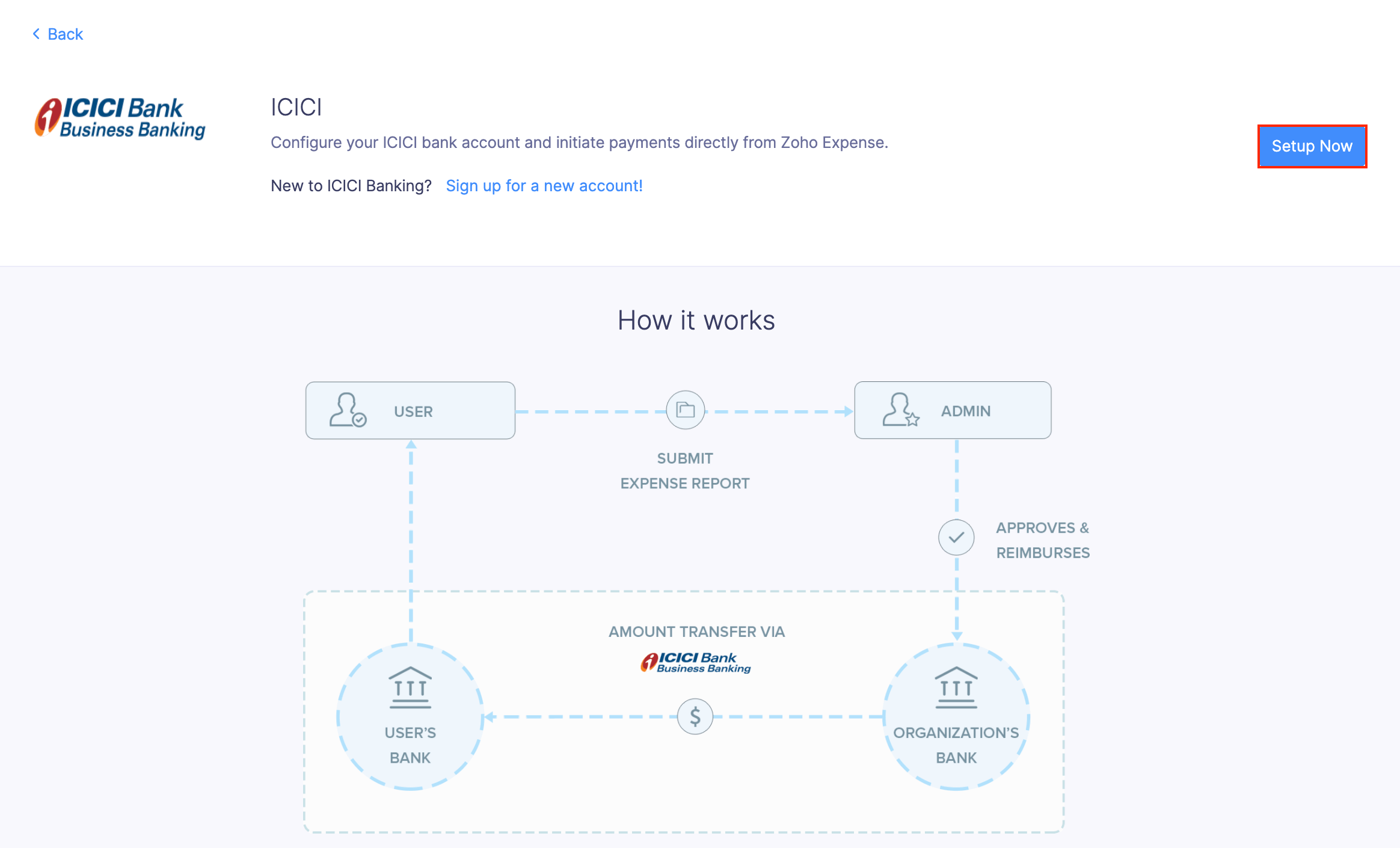 Note: Reimbursement via ICICI Bank can be done only in the Indian edition of Zoho Expense.