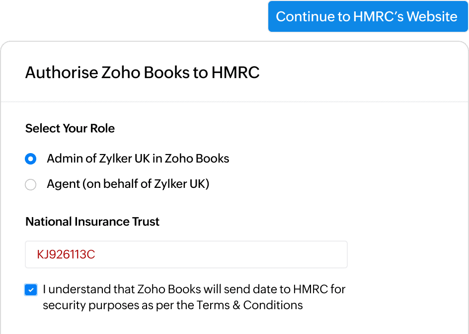 Zoho Books helps you stay connected with HMRC. Once your Zoho Books account is authorized, you can effortlessly manage Income Tax obligations and stay tax-season ready.